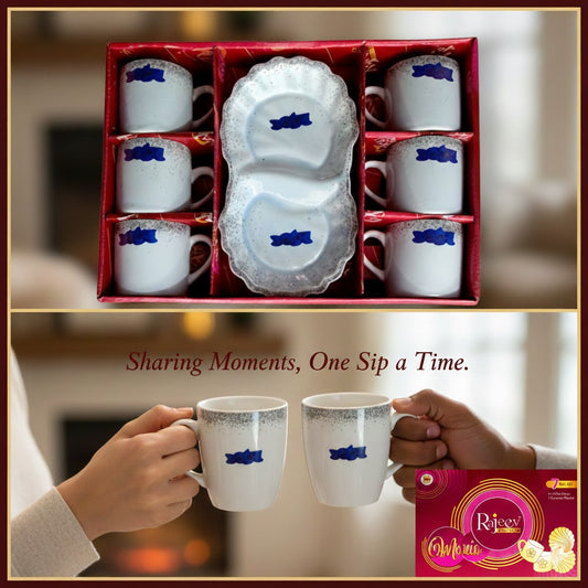 Product Name - Mario Set Rajeev Description : A premium 7-piece Rajeev Veg Bone China collection mugs and a unique leaf-shaped serving platter." In the Box : 7-piece set including 6 coffee mugs and 1 ceramic platter. Capacity : 150 M.L. Specifications(1) Microwave Safe(2) Dishwasher Safe(3) East To Clean(4) ...