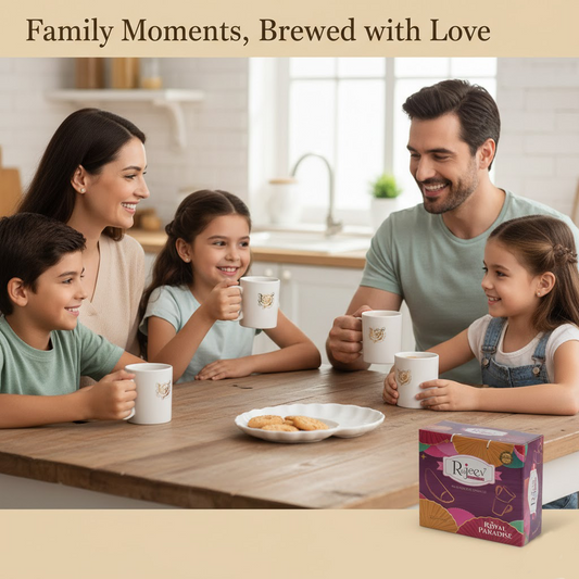 Enjoy Tea Set RajeevDescription : premium 6-piece Veg bone china tea set featuring four elegant mugs, a stylish leaf platter, and a matching double-dip tray for the ultimate tea experience. In the Box: 6-Piece Set: Includes 4 elegant tea mugs, 1 large ceramic leaf-shaped platter, and 1 functional double-dip tray....
